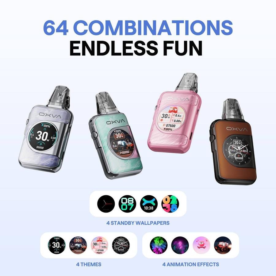 Experience the next generation of smart vaping with the OXVA XLIM SQ Pro 2 Pod Kit. Featuring a revolutionary 1.09-inch HD Color Touch Screen reminiscent of a smartwatch, this device offers unparalleled interactivity, customizable themes, and a highly accurate 5-digit puff diary tracking system.