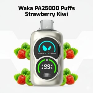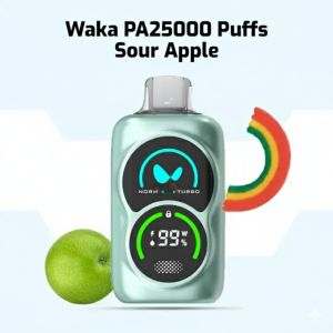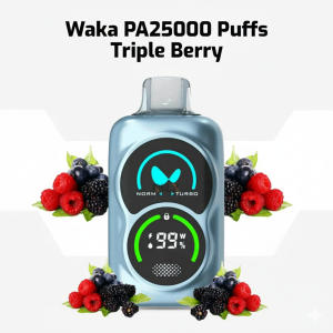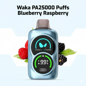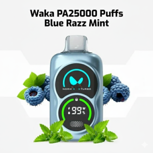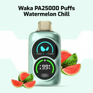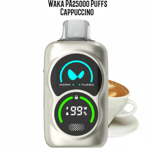 The WAKA PA25000 delivers the premium WAKA experience in a sleek, ergonomic flask design. It features the signature WAKA Dual Mesh Coil and offers customizable performance with **NORM** and **TURBO** modes. While the exact puff count varies by mode, it provides an extended vaping lifespan up to 25,000 puffs.